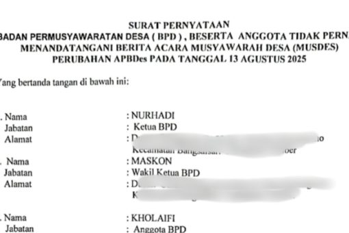 Jember, Pak JITU.com – Bantahan Kepala Desa Karangsono, Mohammad Ahrul Fatah, terkait tudingan pemalsuan tanda tangan dalam berita acara Musyawarah Desa (Musdes) tertanggal 13 Agustus 2025, mendapat sanggahan dari Ketua Badan Perm...