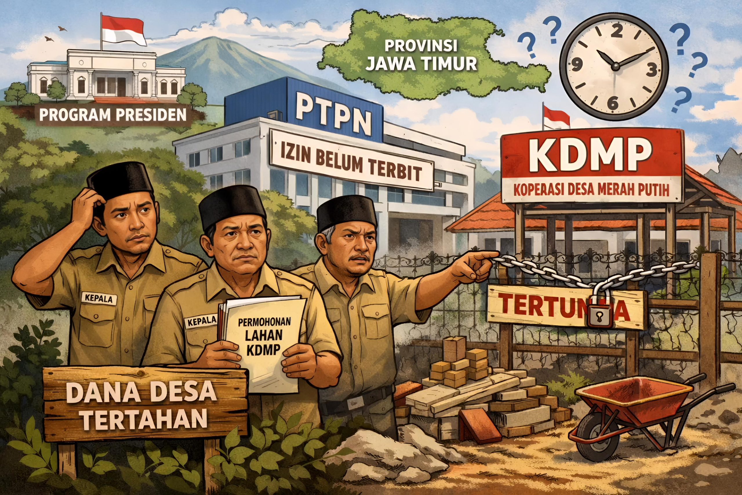 Jember, Pak JITU.com – Sejumlah kepala desa di Kabupaten Jember mengeluhkan belum terbitnya izin penggunaan lahan milik PTPN I Regional 5 Jember untuk pembangunan Koperasi Desa Merah Putih (KDMP). Hingga kini, surat permohonan yan...