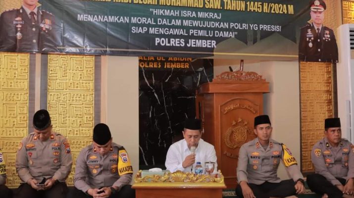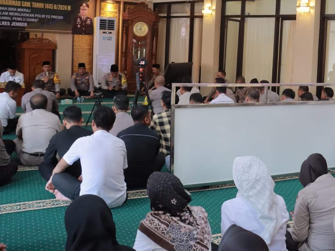 Jember, Pak JITU.com – Di hari yang penuh berkah ini, Polres Jember menggelar peringatan Isra’ Mi’raj dengan tema yang mendalam, “Isra’ Mi’raj: Menanamkan Moral Dalam Mewujudkan Polri Yang Presisi Siap Mengawal Pemilu Damai”.