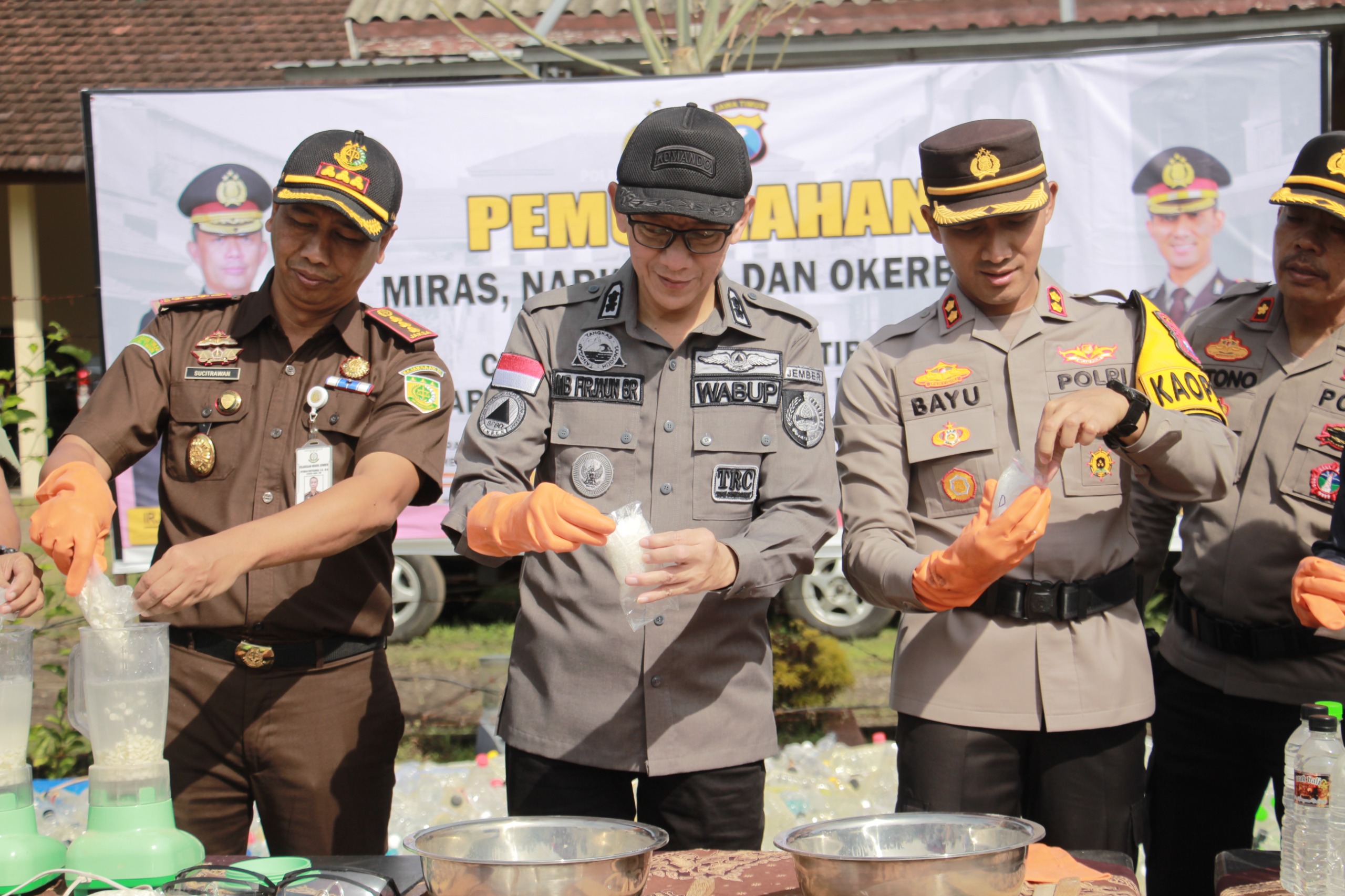 Setelah selesai Apel Gelar Pasukan Operasi Kepolisian Kewilayahan Ketupat Semeru 2024 dilanjutkan pemusnahan BB Miras dan Narkoba hasil Ops Pekat Semeru 2024. (AR)