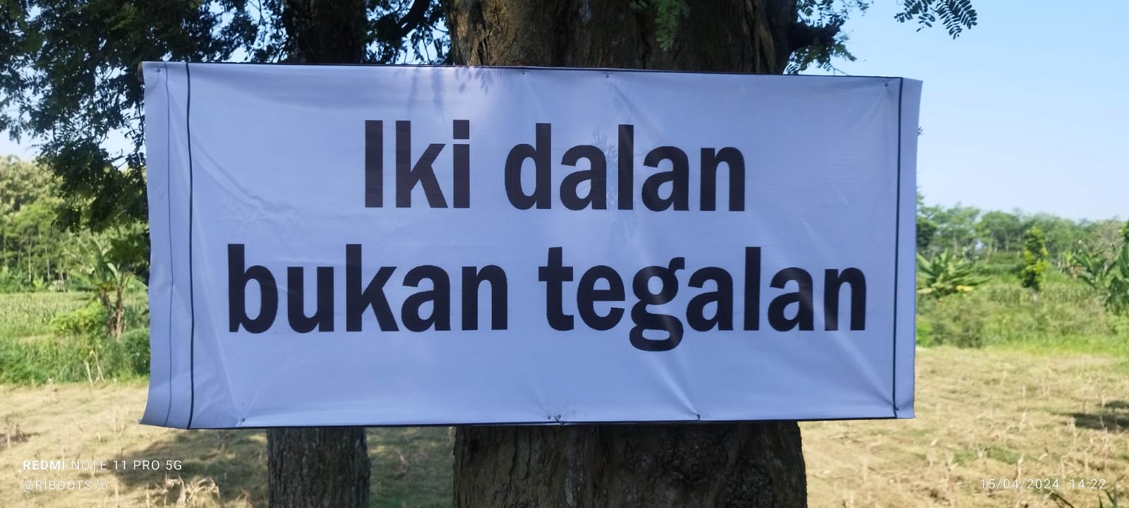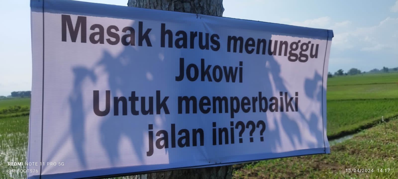 “Pastikan kendaraan anda bisa terbang untuk melewati jalan ini,”. “Masak harus nunggu Jokowi untuk memperbaiki jalan ini?,”. “Iki dalan bukan tegalan,”. “Jangan lewat jalur ini kalau tidak mau tidur di rumah sakit,” tulisan yang tertera dibaner-baner lainnya.