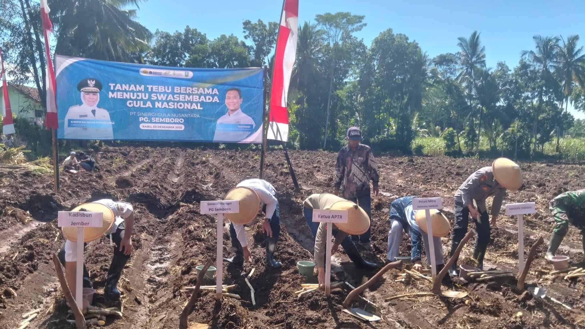 Jember, Pak JITU.com – Dalam rangka pengembangan kawasan tanaman tebu di Kabupaten Jember serta mendukung swasembada gula nasional, digelar acara Tanam Tebu Bersama di lahan warga Desa Tanggul Wetan, Kecamatan Tanggul, Selasa (3/12/2025).