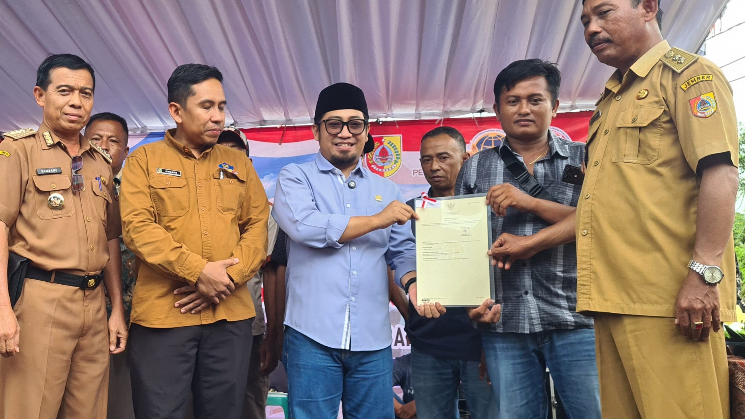Jember, Pak JITU.com – Anggota Komisi II DPR RI dari Fraksi Partai Kebangkitan Bangsa (PKB), Muhammad Khozin, secara langsung menyerahkan sertifikat redistribusi tanah kepada masyarakat Dusun Sumbercanting, Desa Tugusari, Kecamatan Bangsalsari, Kabupaten Jember, Rabu (23/12/2025).